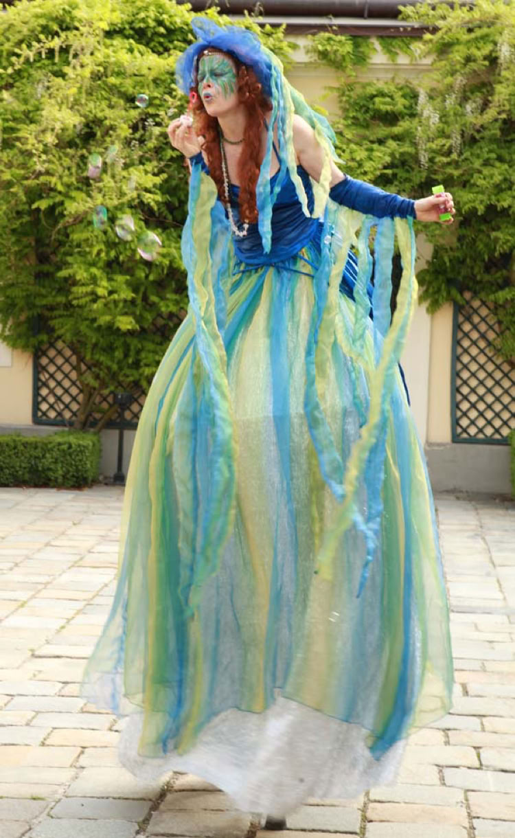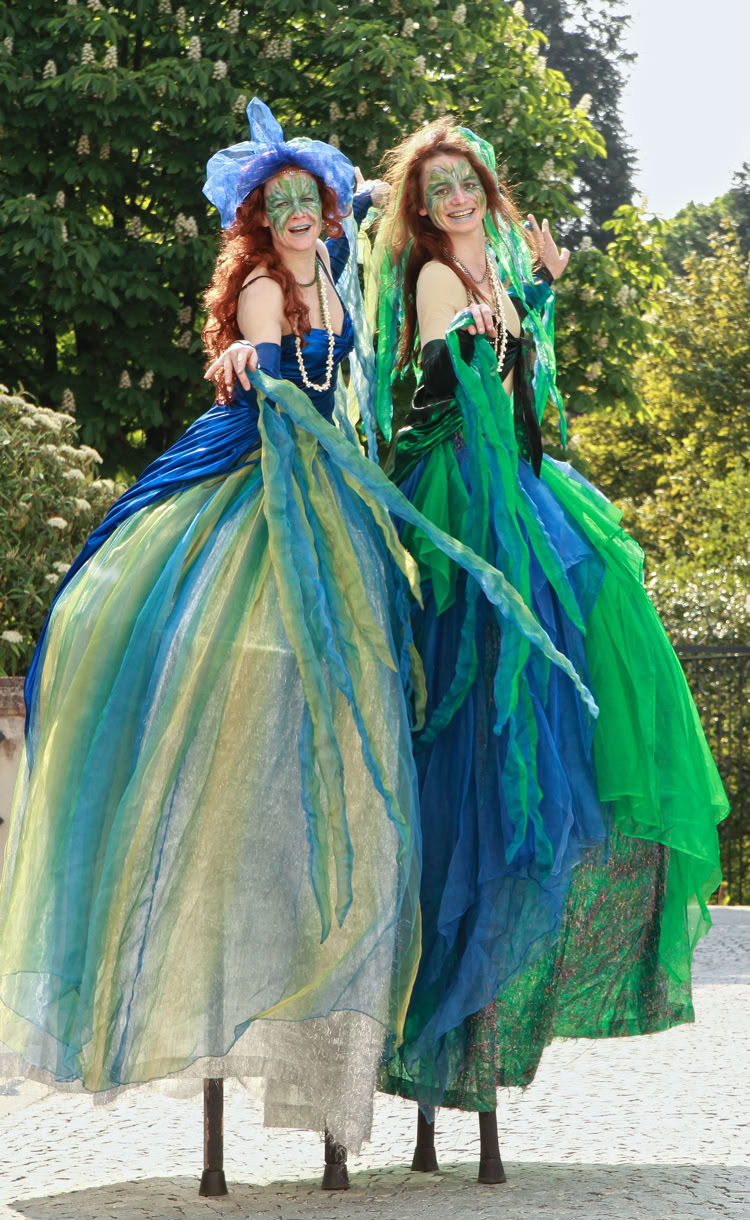Die überdimensionalen Wassernixen erforschen mit fließenden Bewegungen die geheimnisvolle Welt der Menschen.
