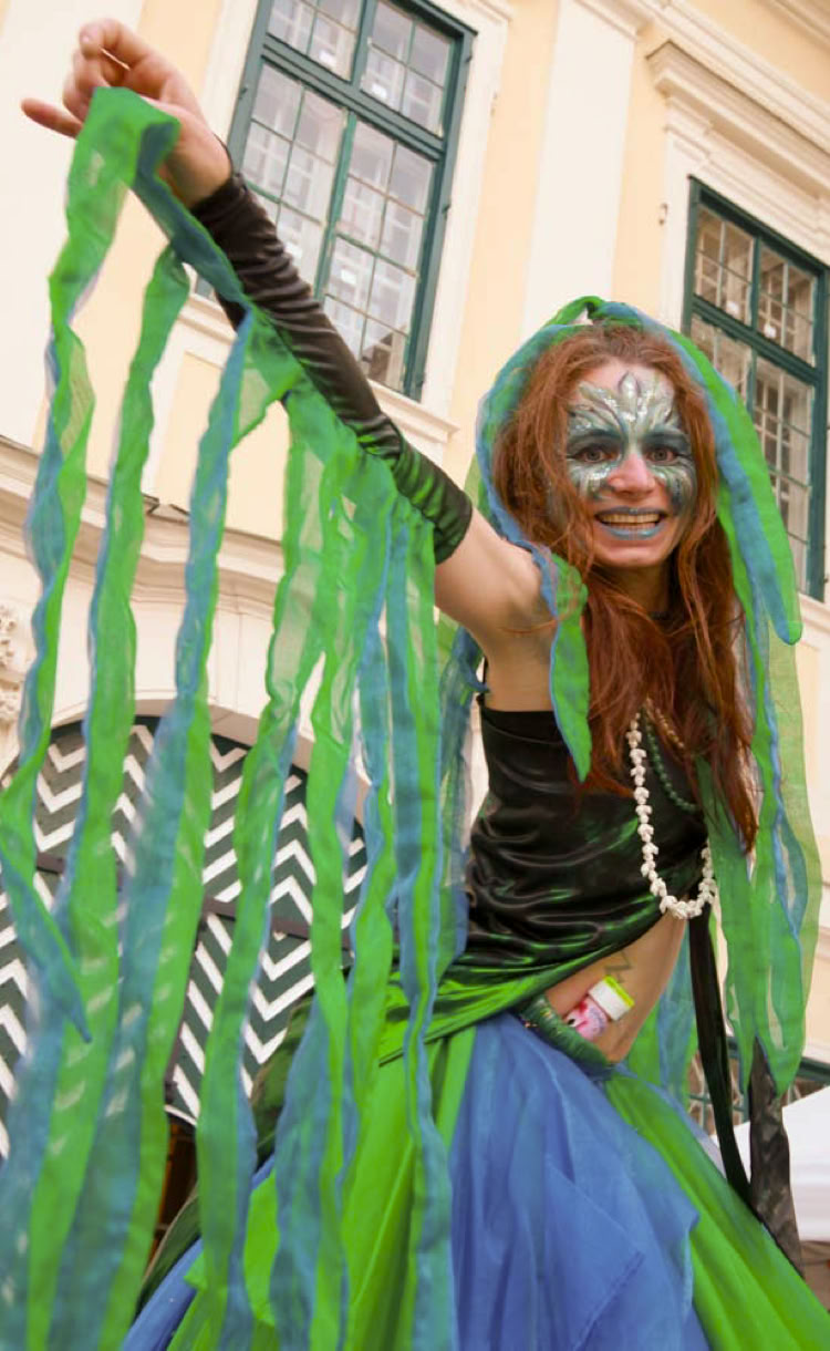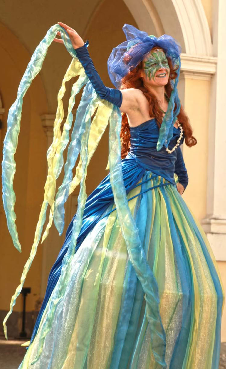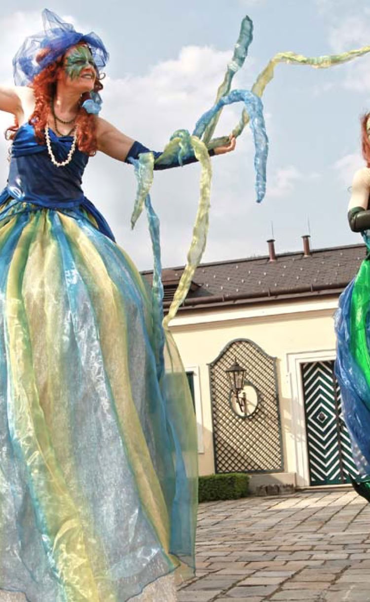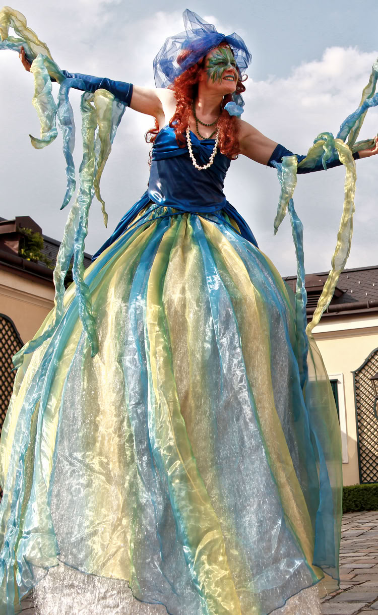 Die überdimensionalen Wassernixen erforschen mit fließenden Bewegungen die geheimnisvolle Welt der Menschen.